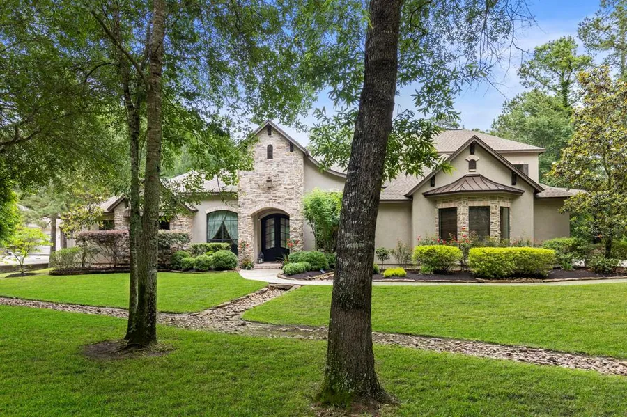 Fantastic Benders Landing custom located on a serene private wooded 1+ acre. Prime low traffic cul-de-sac offering quick access in & out of neighborhood & within walking distance to community playground & park. All living on first level w/second floor offering a large game room & additional bedroom & bath. First level offers a split plan w/3 en-suite bath bedrooms opening into common area with opposite end of home offering a private primary suite location. A study & formal dining room flank the double iron entry doors and open to a brick barrel ceiling that repeats again in the wet bar/grotto area. Custom features include stone & wood flooring, plantation shutters, wood beams, Thermador appliances, marble & granite counters, working double pantry w/desk+ large center island. Fabulous outdoor living room w/wood ceilings & outdoor kitchen just steps from the large designer pool/spa. Convenient to 99, Hardy, and Airport, within Conroe ISD. Showings start 4/29 11am.