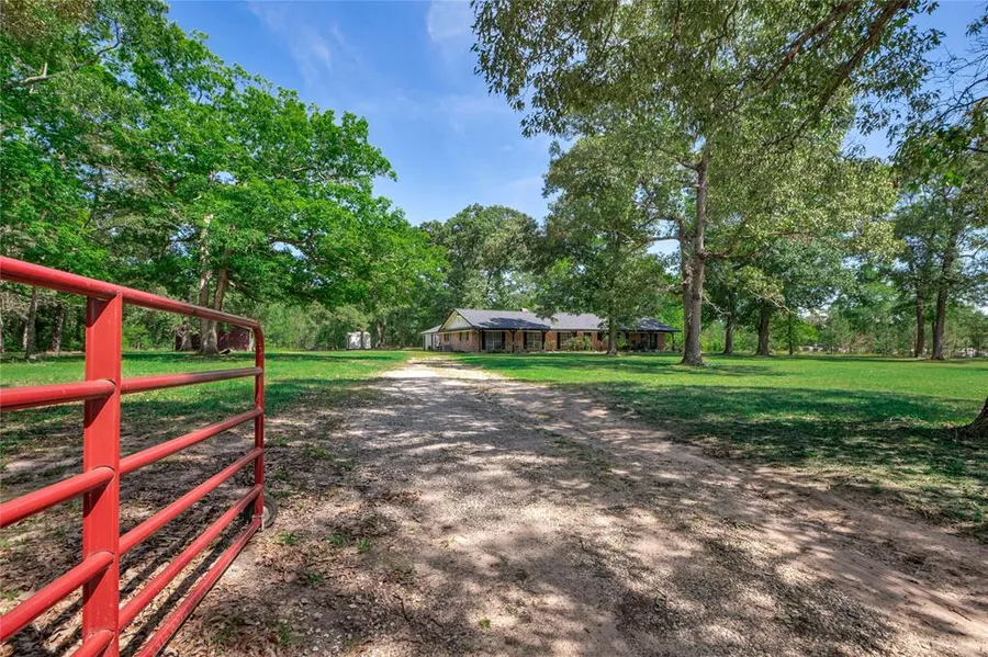 Welcome to this beautiful 4-bedroom, 3-bathroom home situated on 3 acres of land. This lovely property offers country living at its best, with no HOA or MUD taxes to worry about. The open-concept design of the home makes it perfect for entertaining and multigenerational living. The roof of the house was replaced in 2023, ensuring that it will last for many years to come. As you approach the home, you'll be greeted by a full-length porch, adding to the home's charm. An automatic gate provides security as you enter the property. Inside, you'll find a large family room with wood beams and a wood-burning fireplace that opens up to the kitchen. The home also features both formal living and dining rooms, perfect for hosting guests. Additionally, there is a 46x30 workshop on the property, providing plenty of space for all your hobbies and projects.