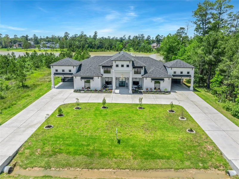 Incredible custom home situated on a 1+ acre WATERFRONT Lot in the Prestigious Bender's Landing Estates. An entertainer's and collector's dream home showcasing a stunning Family Room, Chef's Kitchen, Butler's Pantry, Wine Bar, Fitness Room, Executive Study, Lounge, Game Room, Media Room, Collector's 10 Car Garage, 4 Car Carport, and Covered Patio overlooking the peaceful lake. With 9 bedrooms and 9.5 baths, this home will comfortably accommodate large gatherings. Impeccable finishes like Strata Calcutta Quartz, Black Calcutta Silestone, Marmorea Estatuario Marble, Pella Windows, Seamless Glass, Iron Front Doors, and Innovative Lighting. True Primary Suite with opulent bath and thoughtfully appointed walk-in closet with direct access to the ample-sized laundry room. Each secondary bedroom includes its own FULL bath with the exception of 1 shared Hollywood Bath. Enjoy incredible views of the serene private lake great for fishing! The home is MOVE IN READY!