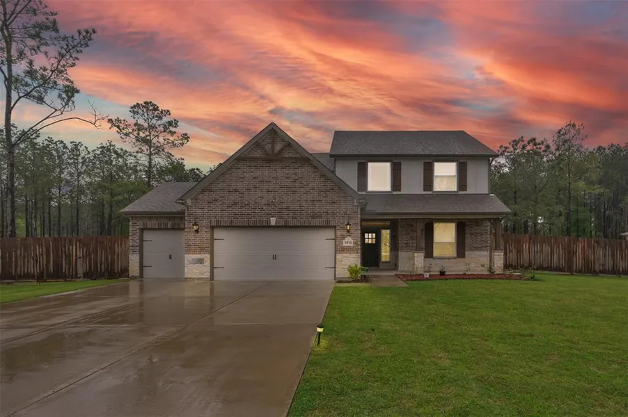 This hidden gem is nestled in a beautiful newly constructed community just outside of Conroe. This one acre home boasts newly energy efficient features and upgrades. The perfectly balance open concept gives extra comfort for entertainment. The large floor plan allows you to stretch out and create your own sanctuary; with plenty of room space to accommodate large families or guests. This home is move-in ready with quartz counter tops, vinyl plank flooring, large walk-in pantry, broad private dining room and ample room for laundry. The fully fenced oversized back yard boast a covered patio over seeing a wooded oasis that can be transformed to your outdoor haven. With a 3 car garage and a flared drive way just further compliments what awaits for you when you come home. Take advantage of all the installed upgrades, NO MUD, Low Taxes and great Conroe schools. Located 50 miles from Downtown Houston, minutes from lake Conroe. This highly rated home and serene community awaits you.