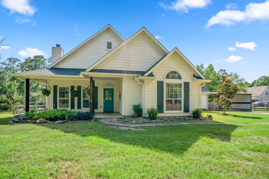 Experience the freedom and fun of 2 unrestricted acres with a sparkling pool that’s perfect for entertaining or relaxing under the stars. This home is made for enjoying life, from the expansive yard and covered patio to the open living spaces inside. The game room with brand-new flooring and a loft create versatile spaces for gatherings or unwinding. Cozy up by the updated gas log fireplace (2023) or cook up a feast in the chef’s kitchen with granite counters, an island cooktop, stainless steel appliances (2023 dishwasher), and a pantry with charming barn doors. The primary suite is your private escape, with backyard views and en-suite featuring dual sinks, a garden tub, a walk-in shower, and a custom closet. Recent updates, including a new roof and tankless water heater (2023), mean peace of mind. Conveniently located near Lake Conroe, FM-105, and I-45, this home offers a laid-back life...