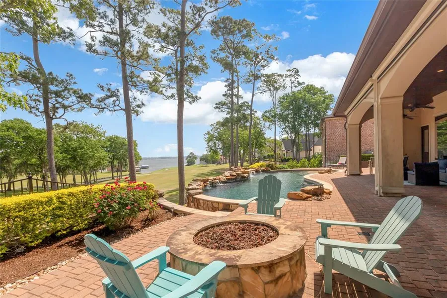 Custom Golf Course home with incredible views of Lake Conroe. This home is in The Estates of Bentwater on the Weiskopf #12. The home features a 3 car garage with epoxy floors, saltwater pool, outdoor kitchen and fire pit. All 3 bedrooms down with ensuites. An incredible kitchen which has Sub Zero refrigerator and wolf range, warmer and steamer with plenty of counter space that allows you views of the course and Lake Conroe. Butlers pantry has sink and shelves with cabinets. The primary bedroom has a setting area with a large walk in closet and bathroom with his and hers areas and vanity area. Covered porch automated patio screens. Upstairs could be another bedroom, media or excise area with its own private bath. This home was designed by Mark Todd and built by Morris Builders. Bentwater offers access to THREE 18-hole championship golf courses, pickleball & tennis, dog park, yacht club, s...