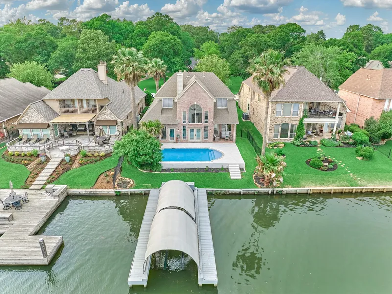 Experience the ultimate WATERFRONT lifestyle in prestigious gated enclave of South Shore Estates. Showcasing breathtaking water views, this home is filled numerous renovations (Approximately $180k spent in the last 2 years!!) Great windows w/natural light and water views! The outdoor oasis delivers a completely updated POOL, refinished & painted dock, & 39-foot boat slip. A desirable open plan offers a large family room with/ soaring ceilings, updated tile flooring throughout, an UPDATED kitchen with/ generous storage, stainless steel appliances, a breakfast room & a walk-in pantry & butler bar! Primary suite offers a private retreat and panoramic lake views. Spa-like bath w/ tub & spacious shower, 2 vanities, & a generous closet. Upstairs features 2 guest BRs w/ ensuite baths. So MANY UPDATES! Walk-up Attic, NEW Carpet & Floors, updated lights, hardware & fixtures throughout. LOW maintenance, LOW electric bills, highly rated MISD, min to restaurants, shopping, The Woodlands & more.