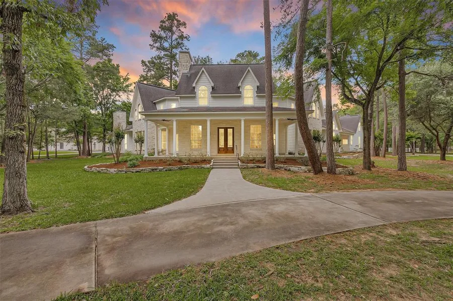 Sitting on just over 2 acres, this custom 5 bedroom home has 3 full & 2 half bathrooms. Inside you will find eye-catching stone work throughout. The main areas offer a wine cellar, formal dining room, and a kitchen that opens up to a second family room. This home is perfect for entertaining. Through the west wing you’ll find the office/study and the owners retreat. Primary en-suite has dual vanities, separate shower/soaking tub, & 2 large closets. Upstairs you have 4 bedrooms & 2 full baths. Walking through the home, the wall of windows offer a picturesque view of the back yard & stocked pond. The east wing of the home features a mudroom, large laundry room, & a prep kitchen/hobby room! Upstairs on the east side of the home, there is a private bonus room that would make a perfect bunk room. Seller has added new flooring to primary and upstairs.