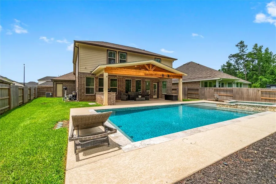 Welcome to this stunning 5-bedroom, 3.5-bath home in Moran Ranch, Willis! Enjoy a custom backyard porch with a full outdoor kitchen, pool, hot tub, and a dazzling light show at night—perfect for entertaining. Inside features a private study, open-concept living with a modern kitchen, and a first-floor owner’s suite with a spa-like bath. Upstairs includes a game room and four spacious bedrooms. This home has it all—don’t miss out!