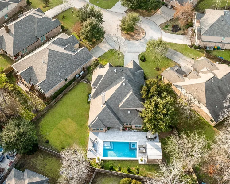 IMMACULATE 4-5BD/3-car garage HIGHLAND home on an oversized cul-de-sac lot in the prestigious WOODFOREST GOLF COURSE community! This stunning property boasts a SPARKLING POOL w/waterfall & FULL OUTDOOR KITCHEN w/hibachi grill, gas burner & beverage fridge—an entertainer’s dream! The backyard is enclosed by 6' cedar privacy fence, full side yard & dog run w/black wrought iron fencing under mature shade trees. Lush landscaping & full sprinkler system enhance curb appeal. Inside, an open-concept layout includes a study, formal dining, living, game & media rms—zoned to top-rated MISD! Soaring ceilings, art niches, wood shutters & wood-look tile add elegance & easy maintenance. The chef’s kitchen shines w/upgraded travertine counters, SS apps, lg island & WIP, flowing seamlessly into the breakfast & living areas. Spacious primary suite boasts an ensuite w/dbl quartz vanities, soaking tub, WI Shower & lg WIC. Well-sized 2ndary BDs:2 dwn/2 up. Luxury, comfort & timeless design—DON'T MISS OUT!