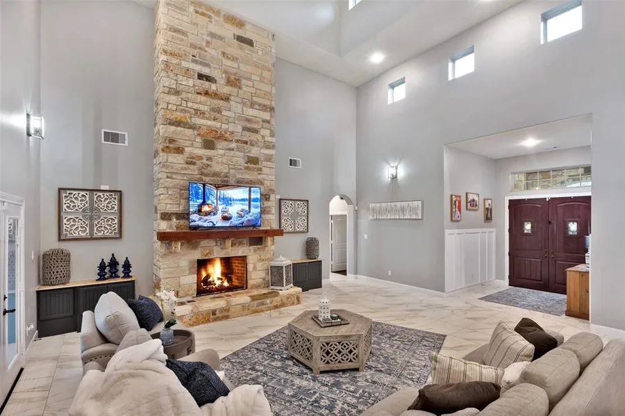 Outstanding Texas Hill country home located in the gated community of Bentwater. Soaring ceilings in the large gathering room and open concept kitchen with dining areas making entertaining easy and fun for family and friends. This newly updated 4 bedroom, 5 bath home sits on a spacious lot with 4 car garages that are extra deep with a storage closet. The home has a gourmet kitchen with 6 gas cooktop burners, granite countertops, double ovens, warming drawer, crushed granite sinks, walk-in pantry and a very large island. The home has all new light fixtures and paint through out. The living area has a wine room with humidor and a wet bar area along with a massive stone gas fireplace. The first floor is ADA compliant. Bentwater offers tennis, pickle ball courts, 3 golf courses, sports facility, spa area, 2 community parks, and a dog park. Generac natural gas powered generator and close to t...