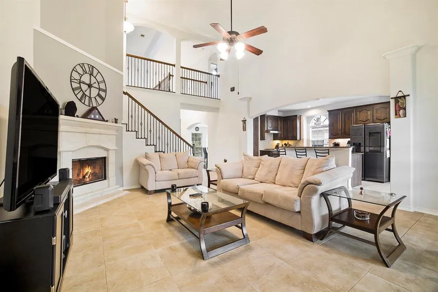 Located inside Oakhurst's golf course community, this 5 bed, 4 bath home delivers the kind of flexibility today's buyers seek. A downstairs flex room sits next to a full bath, perfect for guests or a quiet office retreat. Soaring ceilings, arched walkways, and natural light create a warm, open feel the moment you enter. The kitchen features granite counters, electric cooktop, walk-in pantry, and 42" cabinets. Ideal for gatherings or weeknight routines. Upstairs, a spacious game room connects three bedrooms and two full baths. The primary suite is a true retreat with wood floors, bay windows, and a spa style bath with tub and dual vanities. Sizeable backyard, tile/wood floors down, and quick access to Hwy 59, HEB, & Bush Airport make this home a smart, stylish, and practical move for any stage of life. Outside, residents enjoy parks, greenbelt trails, a competition size pool, a clubhouse, and the signature Oakhurst Golf Club.
