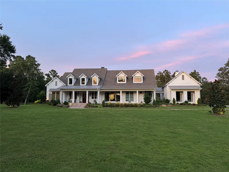 Your dream estate is ready - refined luxury and serene country living on 10+ acres, HORSES WELCOME! Lovely Transitional Farmhouse, custom-built in 2021 with timeless detail: soaring ceilings, exposed wood beams & warm brick accents add character throughout. The heart of the home is kitchen, equipped with Thermador appliances; three ovens, two full-size refrigerators & freezers, light & versatile granite adorns 2 massive islands next to a cozy sitting area with its own fireplace! Oversized family & game rooms continue to impress. Spacious bedroom have full ensuite bath, privacy for all. Primary suite has expansive seating area and spa-like ensuite. 2 "flex rooms" are perfect for home offices, crafts or workouts. Wrap-around porches invite you to relax & enjoy wide-open skies or stroll over to the private pond. A rare combination of thoughtful design, upscale finishes and peaceful acreage-...
