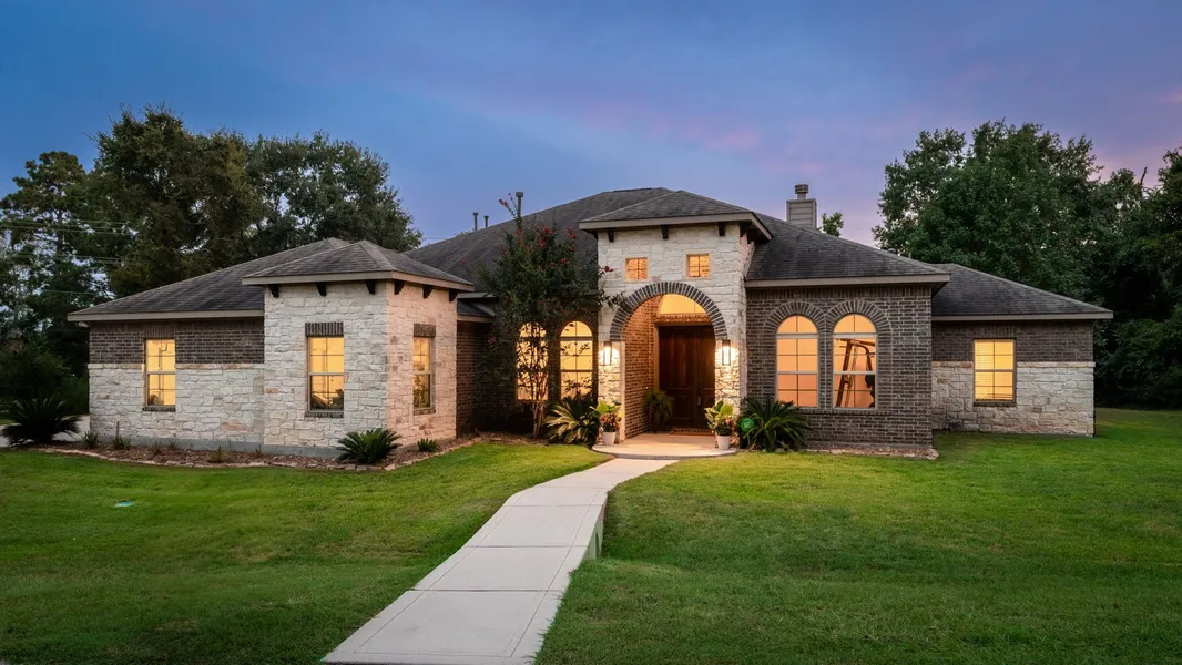 Set on a spacious 1.2-acre lot, home offers perfect balance of comfort, functionality, outdoor enjoyment. Inviting entryway finds a dedicated home office and formal dining room. Open-concept living area cozy gas fireplace and large windows that bring in natural light. Kitchen built for everyday living/entertaining, w/granite countertops, large island, breakfast bar, custom cabinets. Primary suite privately tucked away w/large windows overlooking the pool. Ensuite bath w/separate dual sinks, soaking tub, walk-in shower, two separate closets. Enjoy your own personal getaway w/sparkling pool, waterfall feature, stamped concrete patio, covered outdoor space perfect for relaxing/hosting friends. Room to build a workshop, RV garage, etc. Smart layout includes two addt'l bedrooms and flexible media room option as 5th bedroom. Golf cart access to Woodforest. Home offers the space you need—inside and out. Easy access to I-45, Aggie Expressway, The Woodlands, and more!