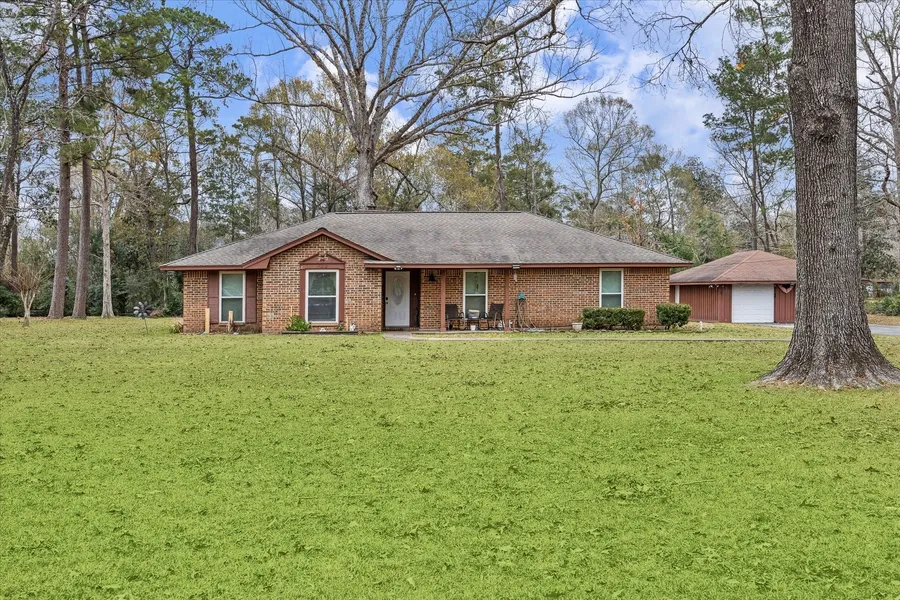 Excellent Investor Opportunity!! Open the door to this Charming Home located in Woodbranch subdivision. It features an open concept combined family room, kitchen, breakfast bar and flex area for dining or office space. A welcoming family area with a high vaulted ceiling and a beautiful stone electric fireplace. Kitchen recently remodeled in 2020 with lots of upgrades and features, including cabinetry, granite countertop backsplash and appliances. Large breakfast bar includes cooktop with plenty of space for preparing food and entertaining family and friends. Seamless slate tile flows throughout the home, leading to two bedrooms and a spacious primary and primary ensuite bathroom with double sinks and a walk-in shower. This home sits on an acre, an elongated driveway for extra parking, an oversized detached two-car garage that provides space for a workshop. Easy access to IH-69 freeway, s...