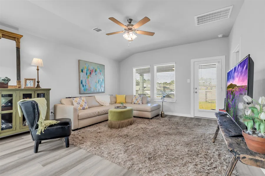 MOVE-IN READY! Adorable single story home located in the community of Pine Lake Cove. This home features open living, high ceilings & open floor plan. Spacious kitchen includes white cabinetry, granite countertops, stainless appliances & large island perfect for casual dining or entertaining. The open-concept great room is filled with natural light & offers beautiful views of the backyard. The primary bedroom overlooks the private backyard & includes an ensuite bath with double vanities, large walk-in shower & huge walk-in closet. Two additional bedrooms & full bath located on a separate hallway provide plenty of space for family or guests. Large Corner Lot Relax outdoors on the covered patio with peaceful views of the wooded common area. Beautiful community with dog park, splash pad, park & a future community pool. Ideally located near Lake Conroe - with boating & fishing & close to sho...