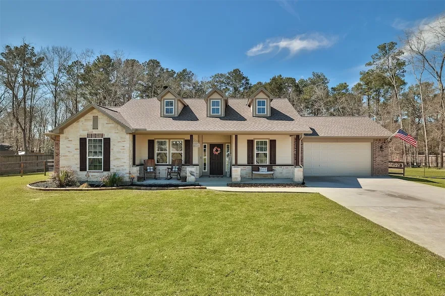 This stunning one-story home, built in 2019, offers 3 bedrooms, 2.5 baths & high-end finishes throughout. Nestled on 1.5 acres in a cul-de-sac, this property allows horses & features a cross-fenced backyard, separating the large pond stocked w/ perch & catfish from a children s play area complete w/ a playground, trampoline & climbing feature, all included. A brand-new 2024 roof & a whole-house water softener w/ reverse osmosis provide enhanced durability & everyday convenience. Inside, the spacious open-concept layout is centered around a wood-burning fireplace w/ gas connections in the living room. The kitchen boasts an island, dine-in bar & walk-in pantry, while the formal dining area offers flexibility as a home office or additional living space. The primary suite features double closets, a soaking tub, dual vanity areas & a separate shower. To top it off, the neighborhood is regularly patrolled by police, providing added peace of mind. 3D available! LOW 1.79% tax rate!