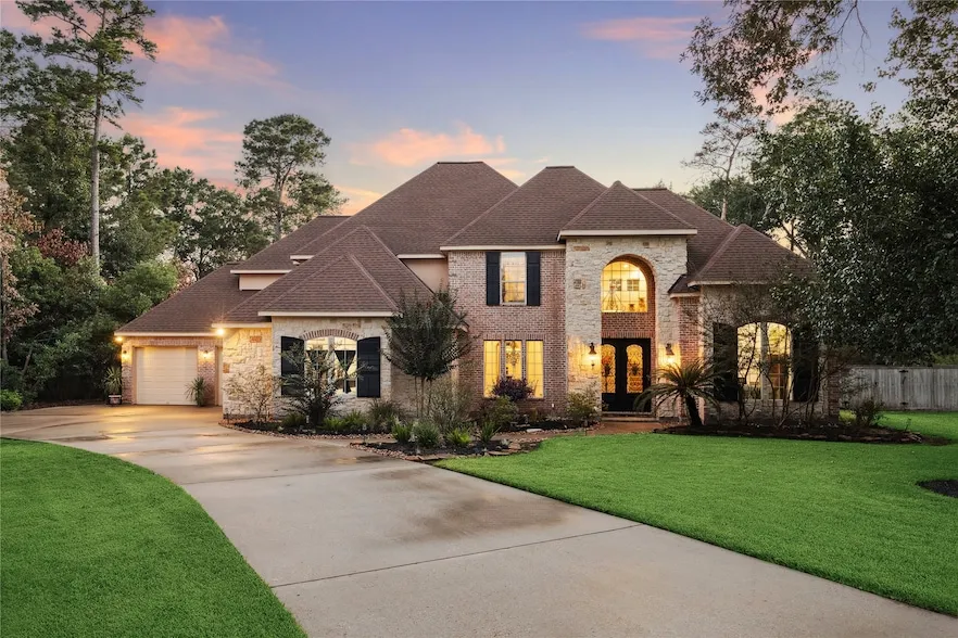 New Roof(dec 2025)! Discover the charm of this custom home tucked away on a stunning 1.4 acre cul-de-sac lot in the coveted Benders Landing Estates! This property boasts an expansive back yard complemented with a pool with rock waterfall, flagstone conversation area, gas firepit, and recently extended covered patio! Entering the stately double front doors, you will be amazed by the breath taking 2 story Foyer with winding staircase flanked by a home office with French doors and an extravagant formal dining room with butler's pantry & wine rack! Freshly painted walls throughout, natural stained wood floors. Cast stoned fireplace & glass French Doors add to the comfort in the open concept family room. Gourmet Island Kitchen opens up from the family room for fantastic entertaining! Full secondary bedroom with bath downstairs perfect for guest! 2 staircases lead to a spacious upstairs w/ 2 large bedrooms game and media room! Whole house generator, Low taxes!, see attached upgrade list