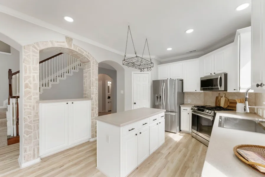 Interior highlights include a spacious kitchen with stainless steel appliances, New LVP flooring downstairs and in the study, crown molding, tinted windows, and decorative finishes throughout. The primary suite offers generous space along with a large bathroom and closet.