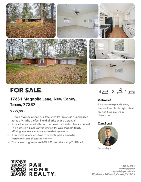 Welcome to your new home, 17831 Magnolia Ln! Tucked away on a spacious, tree-lined lot, this classic, ranch-style home offers the perfect blend of privacy and potential. It is a 4-bedroom, 2-bathroom home with a timeless brick exterior! This home is a blank canvas waiting for your modern touch, offering a quiet sanctuary surrounded by nature. Recent updates: All interior paint including ceiling texture, new ceiling fans and elegant lights throughout the house, tile in kitchen, new stainless farm sink, new kitchen faucet, 5 gas burner stove w/griddle, convection oven w/lit up knobs, dishwasher, some cabinets, doors, handles, newly remodeled primary bath, AC 3.5 tons, gas water heater 2021, and 2.3 acres for COMPLETE ENJOYMENT!
