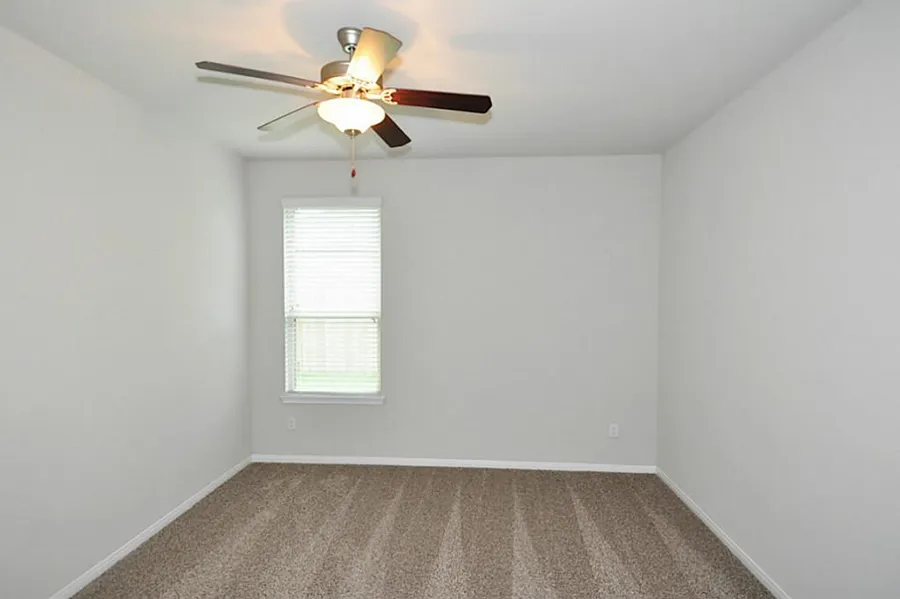 Beautiful one-story DR Horton brick & stone home with 3-car garage! Open floor plan features tile flooring throughout main areas. Cozy den with corner fireplace opens to island kitchen with granite countertops, stainless steel appliances, breakfast bar, under-cabinet lighting, and pantry. Private primary suite offers direct access to spa-like bath with soaking tub, separate shower, dual vanities, private commode, and oversized walk-in closet. Dedicated study and formal dining room. Guest suite with private bath at front of home plus two additional secondary bedrooms with walk-in closets. Spacious utility room. Covered patio overlooks large tree-filled backyard with plenty of space to enjoy. Washer, dryer, and refrigerator convey. Tankless water heater. Click movie reel icon for slideshow with 360° views of select rooms and yard.