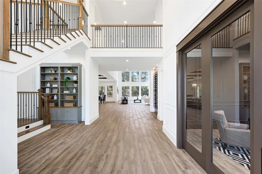 Welcome to this stunning custom home on 1.5 acres in the exclusive gated section of HME. Thoughtfully designed with both elegance and comfort in mind, this home features a dramatic wall of windows that flood the interior with natural light. Inside, you’ll find rich white oak cabinetry, sleek tile flooring, elegant countertops, and striking floating stairs. The chefs kitchen is equipped with Thermador appliances, a custom vent hood, pot filler, and a spacious walk-in pantry. Custom features like a designer wine rack, built-ins, high-end lighting, and upgraded fixtures are found throughout. The primary suite boasts a custom walk-in closet designed for optimal function and style. Enjoy indoor-outdoor living with large sliding doors that open to your private outdoor space. This home is a perfect blend of craftsmanship, thoughtful design, and livable luxury. Don’t miss your chance to own thi...
