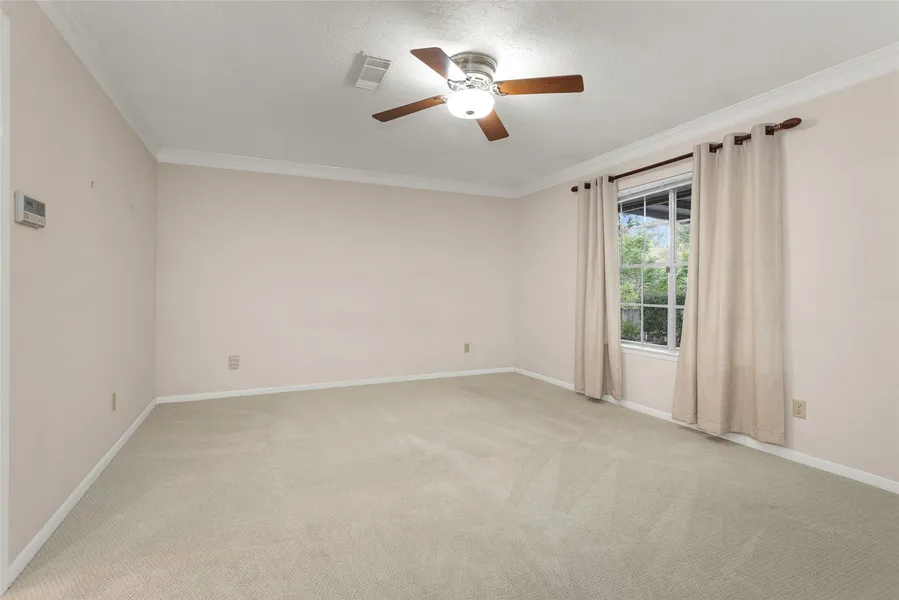Great home in the heart of Conroe. Large living room with vaulted ceiling, built-ins and gas fireplace. Kitchen has abundant cabinets and counter spaces. Dining room is adjacent to kitchen and breakfast room. Primary bedroom has large walk-in closet. Two spacious secondary bedrooms with walk-in closets. Primary bath and secondary bath have been updated. Covered patio overlooks large backyard. Refrigerator, washer and dryer included. Close to Conroe Country Club, I-45, Loop 336, Lake Conroe and The Woodlands. Roof replaced in 2023. Driveway replaced 2025. Fence replaced 2025.