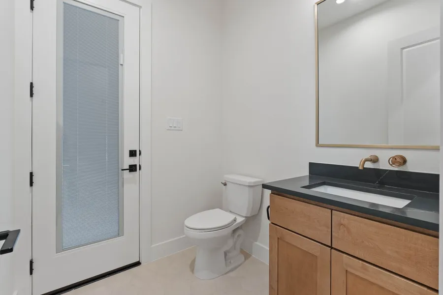 This stunning modern farmhouse sits gracefully on a large, private lot surrounded by mature trees, offering unmatched tranquility and charm. The exterior showcases a striking combination of smeared brick and crisp board-and-batten siding, highlighted by natural wood accents and multiple architectural gables that create exceptional curb appeal. A brilliant two-story entrance welcomes you inside, framed by expansive windows that flood the home with natural light. Metal roof accents, clean lines, and thoughtfully designed detailing blend contemporary elegance with timeless farmhouse warmth. With its spacious layout, premium exterior finishes, and peaceful forest backdrop, this home offers luxurious living in an idyllic setting.