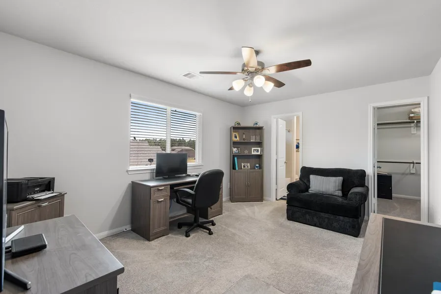Welcome to this spacious 4 bedroom, 3.5 bath, 3 car garage home in the desirable acreage community of Deer Pines. Nestled on a large one acre lot, the fully fenced backyard offers plenty of room for your dream shop, pool or both. Inside, you’ll find a chef’s kitchen with a large island and breakfast bar, stainless steel appliances and granite countertops. An oversized formal dinning room gatherings. The owners suite offers bay windows, dual vanities, large soaking tub, oversized shower and separate his/hers walk in closets. The upstairs features a large game room, a guest suite with its own bathroom, 2 additional bedrooms that share a third bath. Additional features include a Generac whole home generator, wood look porcelain plank flooring, 2 ( 12x16 ) wood frame storage buildings and an irrigation system. Come tour this meticulously maintained home today.