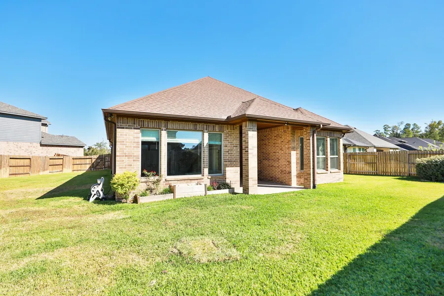 GORGEOUS 3 bedroom with study home built by Shea builder. This home is loaded with upgrades! Home features premium landscaping, custom garage coach lights, stamped concrete on front and back patio with gutters. Lot is oversize, ideal for a pool or garden. Home interior features 8-foot doors throughout, wood tile throughout home, no carpet here! Split floorplan, extra recessed lighting in every room, mud space with storage, laundry room has upper cabinets, folding area & hanging rod, kitchen has plenty of storage and counterspace, this is an amazing space! Kitchen has a wood vent hood, double ovens, under counter lighting, prewired for additional lighting, double trashcan pullout and upgraded cabinets with hardware. Master bedroom features tray ceiling, bay window, Baja walk-in shower with body spray and floor to ceiling tile, split vanities & privacy window. You do not want to miss out on tis amazing home! Zoned to Grand Oaks! Great location, near 1-45, Grand Parkway & Hardy Toll!