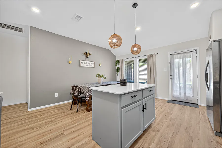 This beautiful 4-bedroom, 2-bath home is absolutely stunning and very well maintained. It features an elegant kitchen with stylish gray cabinets, white quartz countertops, and a bright, open layout. High ceilings, luxury vinyl flooring, and large windows fill the home with natural light, creating a warm and inviting atmosphere. Upgrades include smart light switches, installed gutters, and a spacious backyard perfect for relaxing or entertaining. Washer, dryer, and refrigerator are included — making this home truly move-in ready! This home comes with a transferable builder warranty, protecting the roof and structural for added security and confidence. Additionally, an assumable loan at 5.625% interest rate may be available for qualified buyers.