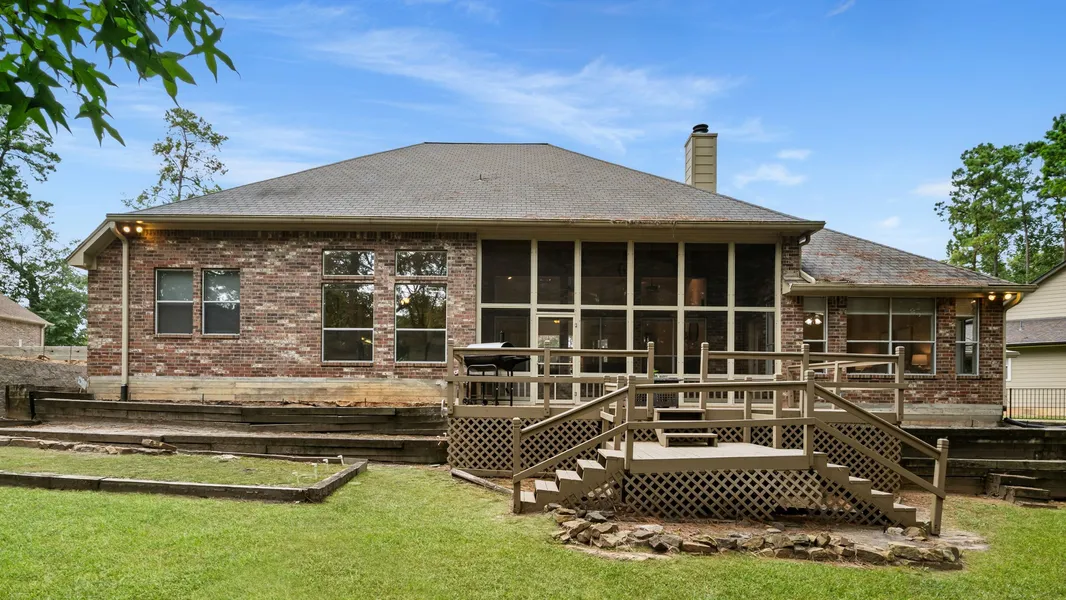 Incredible custom one story home in Houstons premier gated waterfront, golf community on Lake Conroe. This home backs up to a reserve offering privacy and shade with NO back neighbors. The kitchen features designer white granite, subway tile backsplash, expansive counter and cabinet space, 2nd sink, glass cabinetry, and high-end stainless steel appliances. The sunken living room includes wood flooring, fireplace and a picturesque wall of windows. The spacious primary suite showcases a spa-like ensuite bath with 2 walk-in closets, jacuzzi tub, and oversized walk-in shower. Enjoy an expansive screened porch and outdoor living. Additional features include a hidden storage shed, oversized garage w/golf cart bay, 15 x12 Texas basement with/ HVAC, and an oversized bedrooms. Security is a priority in Bentwater with a 24 hour manned gate. Resort style living with a marina, 2 pools, 3 18-hole championship golf courses, country club, yacht club, sports club & pickle ball. Luxury living awaits.