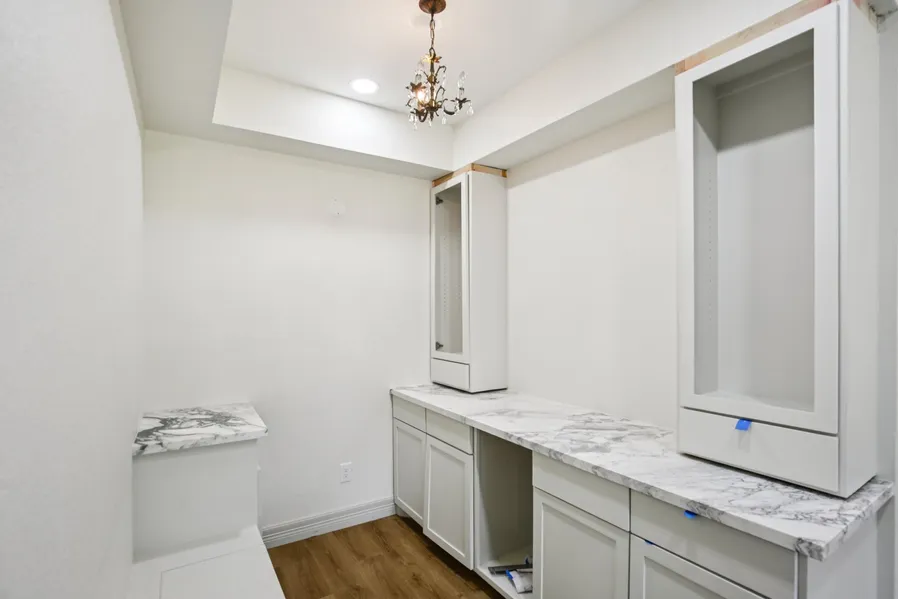 This stunning custom-built two-story home sits on a 10,075 sq. ft. lot and offers 3 bedrooms and 2.5 bathrooms. The exterior features a unique stone elevation with a grand double-door wood entrance, creating impressive curb appeal. Inside, the living and dining areas boast soaring high ceilings, while the oversized kitchen island with marble countertops and a walk-in pantry make the kitchen perfect for both daily living and entertaining. A versatile flex room can easily serve as a wine room, or bonus space. The primary suite includes a spacious walk-in closet with a cathedral ceiling, adding elegance and function. Upstairs, the iron stair balusters lead to spacious secondary bedrooms designed for comfort. Additional highlights include two large laundry rooms, a covered back patio, and a generously sized backyard ideal for gatherings or outdoor relaxation. Seller will upgrade the followin...