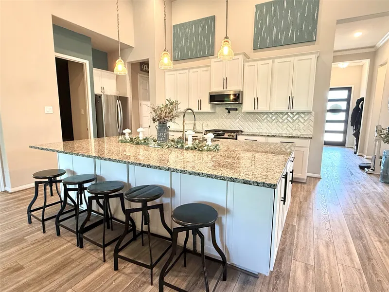 Gorgeous 1-story home offers 4 bedrooms with 4 full baths, a game room, a media room (prewired for surround sound), an office with french doors, a large dining room off the kitchen, and no back neighbors. The open-concept floor plan offers a large kitchen with a huge 9x6 granite island with 360 storage overlooking the living room making it perfect for entertaining. The primary bedroom features a custom walk-in closet and a recently renovated bathroom. Home has EV charging installed in garage! Easy access to 99, 45, and 59. Only 15 minutes from the Woodlands Mall. All in the sought-after neighborhood of Artavia offering tons of walking trails, a wooded outdoor fitness area, 5 acre lake with paddle boats, a 24/7 fitness center, a large park, a splash pad, and green space. Enjoy a meal or socialize with neighbors at the Cafe or at one of the many gatherings and events hosted by the communit...