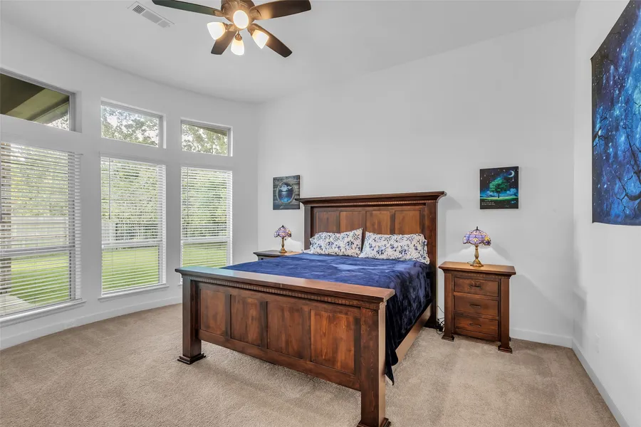 Impressive and like new, this Perry Home has a design and timeless details that create both comfort and style. Enjoy the spacious entry, private office, and formal dining used currently as library that opens up to the heart of the home. Open family room features cast stone fireplace, high ceilings, and wall of windows overlooking yard backed up to the Green Belt. Large island kitchen features great entertainment space w/breakfast bar, walk-in pantry, and stainless appliances. Secluded primary suite w/curved wall of windows, a primary bath w/double sink, garden tub, separate shower, and 2-spacious walk-in closets. Secondary bedrooms are thoughtfully placed, connected by a convenient Jack-and-Jill bath. Additional features: alarm system, smart home, covered patio w/ privacy of protected land directly behind the home, a mudroom and a 3-car garage. This 4 beds flexible living spaces, and re...