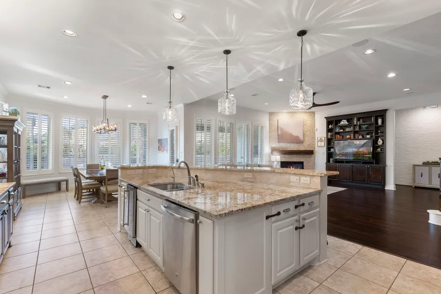 Don't miss out on this meticulously updated home boasting a range of modern features, including a beautifully tiled entry ceiling, captivating brick accent walls, hidden storage room, elegant wood flooring and contemporary fixtures add to the overall charm of the residence. The family room offers custom built-ins, gas-log fireplace and a wall of windows overlooking the pool. The gourmet kitchen features granite counters, a wrap-around island, top-of-the-line stainless steel double ovens and a bonus wine room. Primary suite impresses with high ceilings and spa styled bathroom w/walk in shower, soaking tub, his & her closets. You'll find an extra-large game room, half bath and custom bar. Step outside to your backyard oasis, where an oversized covered patio provides the perfect setting for entertaining guests, a sparkling pool, an inviting spa with waterfall plus a removeable child fence. ...