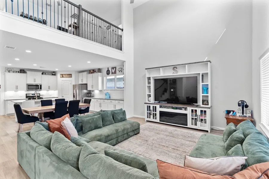 Step into this impeccably maintained 5-bedroom, 3-bath home that offers the perfect blend of comfort, style, and functionality. Designed with an open-concept layout, the spacious kitchen, dining area, and living room flow effortlessly together. The main floor features two generously sized bedrooms, perfect for guests, a home office, or multigenerational living. Upstairs, you’ll find three additional bedrooms, a full bath, and a large game room—an ideal spot for movie nights, playtime, or a secondary living space. The kitchen is a chef’s delight, complete with a stainless steel side-by-side refrigerator (included), soft-close cabinetry, modern hardware, and upgraded sinks in both the kitchen and bathrooms.