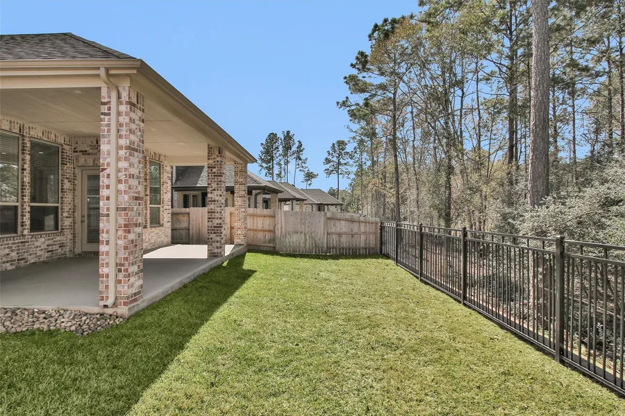 Elegant Colonial 1 story home w/tons of storage, backing to peaceful green space w/no backyard neighbors. From the moment you enter, you’re welcomed by high ceilings & a formal entry that set the tone for this beautiful home. The open, bright kitchen features an island & breakfast bar, flowing seamlessly into a large dining area—perfect for entertaining. This home offers 2 primary bedrooms thoughtfully separated from the secondary bedrooms, plus a dedicated home office/study. The main primary suite includes a sitting area overlooking the backyard retreat & a spacious ensuite bath w/soaking tub, walk-in shower, & an impressive walk-in closet—be sure to check out all the closets in this home! Upstairs, discover a secret climatized extra room at the top of the attic stairs, & don’t miss that the entire attic is fully floored. Relax on the covered extended patio while listening to the birds & enjoying serene green space views. Woodforest has dog parks, parks, pools, splash pads, tennis, golf