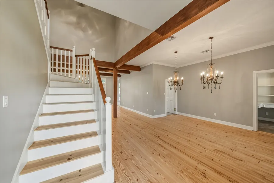 Tucked within the rolling acreage of High Meadow Ranch, this refined 5-acre equestrian estate offers privacy, functionality, and thoughtful design at every turn. Fully fenced and cross-fenced with a recently regraded arena and pond, the property is built for both everyday riding and relaxed country living. A 5-stall main barn and insulated 2-stall MD Barnmaster shed row provide a complete setup with automatic waterers, new paddocks, hot and cold wash rack, fly spray and misting systems, tack room, well, and sprinkler-served pastures. Inside, the remodeled home blends warmth and sophistication with exposed wood beams, refinished solid pine floors, Thermador appliances, quartz counters, custom pantry shelving, soft-close cabinetry, crown molding, and designer lighting. Integrated cameras at the home and barn and a Level 2 EV charging station add modern convenience. Residents enjoy private riding trails, championship golf, pool, clubhouse, and easy access to Hwy 249 near H-E-B and Kroger.