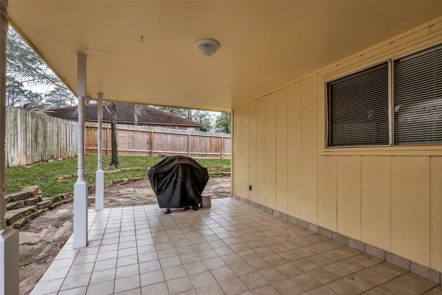 This charming Panorama Village gem offers character, comfort, and convenience. Relax on the serene front porch and swing away the day. Inside, you’ll find new carpet and fresh paint throughout, with elegant crown molding adding warmth and style to the living space. The cozy kitchen provides plenty of counter space for meal prep and gathering, while walk-in closets in every bedroom offer exceptional storage. French doors open to the back porch—an ideal setting for outdoor entertaining. The backyard shed features ramp for golf cart access, 220 and 110 plugs for charging, and space for a workshop. Nestled in established Panorama Village which offers both recreation and a serene lifestyle with no HOA fees or MUD, and low tax rate. Centrally located in Conroe for easy access to I-45. Garage offers new garage door opener, generator plug interface for added convenience and peace of mind. 2018 exterior paint, 2018 driveway improvements, 2023 water heater.
