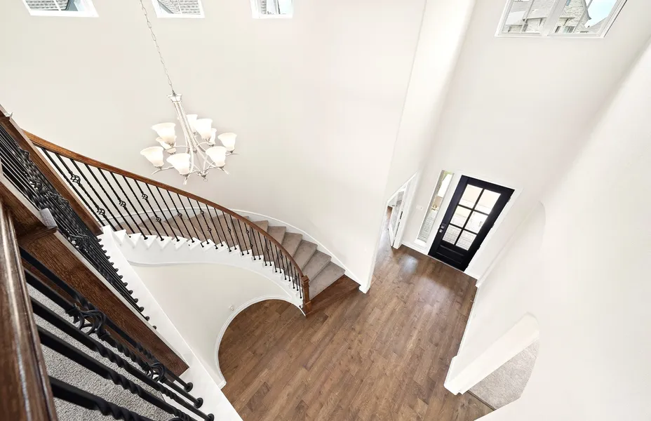 2-story home features an entry with 21' ceilings that extend past study. Oversized 17'x23' family room with 21' ceilings, corner fireplace, and full wall of windows. Open kitchen features 42" cabinets. Master bath includes a freestanding tub, separate shower, His & Hers vanities, and dual walk-in closets. Located upstairs are 3 bedrooms, 2 baths, media room and a game room. Extended covered patio overlooks the backyard.