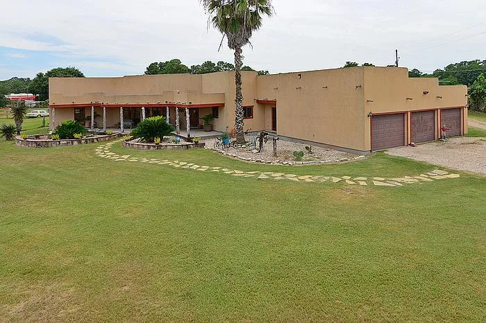 Located JUST MINUTES FROM THE WOODLANDS!!!! Lovely Santa Fe style stucco home on 5.074 acres of unrestricted and mostly cleared land. Near The Woodlands and all of its amenities. 3 bedroom 2 bath home with 3 car garage with large den and wood burning fire place. Barn with multiple stalls plus storage shed and 2 lean-to buildings. Ready for horses, goats, cattle, or build to suit for whatever you need.