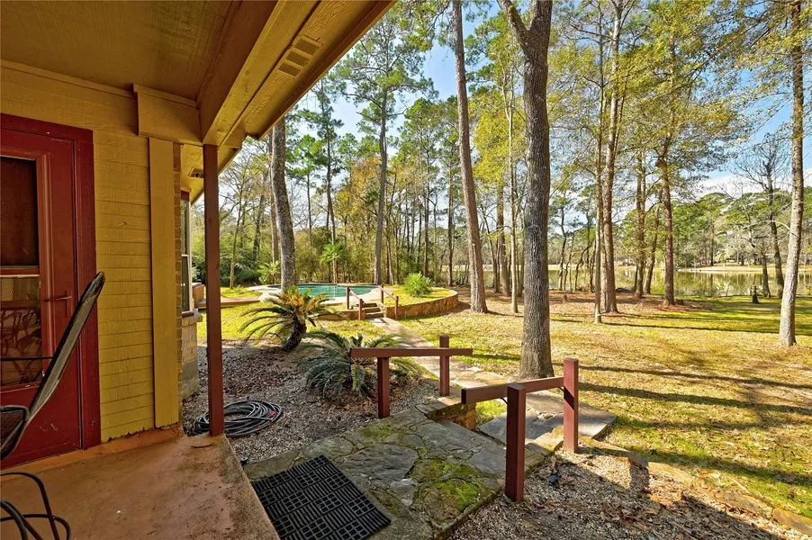Nestled on 2.815 wooded acres in historic town of Stagecoach, Texas-small, charming, incorporated town - the 4-bedroom, 3-bath home offers 3474 sq ft of lakeside tranquility. Set in towing trees, the property ensures privacy & charm, just a short drive to Tomball or Magnolia. Inside, custom flagstone flooring in the living areas & new porcelain tile in the bedrooms makes care easy. Roof was replaced 4 years ago. And on the garages, too. Two modern heat pumps for efficient, year round climate control - one new in January 2026- assure comfort. A saltwater pool &separate hot tub invite you to unwind. Or unwind on the covered rear veranda, as nature puts on a show. Deer, ducks, heron, turtles, all just outside your door. Car enthusiasts will appreciate the air conditioned detached garages. Plenty of space for parking & storage. Extraordinary retreat blending modern convenience & timeless el...