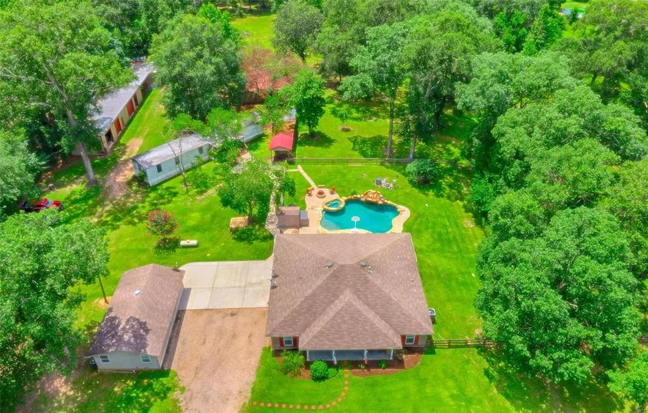This one has it ALL! 10 beautiful UNRESTRICTED acres with electronic entry gate, 3bedroom/2 bath main house with office, 3bedroom/2bath mobile home, PLUS a 1 bedroom guest cottage, salt water POOL, shop/warehouse, pass thru barn with stalls, additional outbuilding for storage & 2 ponds. All this is nestled among mature shade trees, flowering magnolia trees & fruit trees. Main house has all new dual pane windows for energy efficiency & great views. Large covered patio spans back of the main home & overlooks the sparkling salt water pool with waterfall feature, spa & firepit, plus direct access to additional half bath. The 720 sqft guest cottage is self sufficient, featuring eat-in kitchen, living/bedroom combo and large bathroom with laundry hook up. Shop/warehouse is a metal building that features 3 individually enclosed spaces, one of which is climate controlled with electricity and slab, additional open space at the end of workshop is ideal for equipment storage. 50 amp RV hookup.