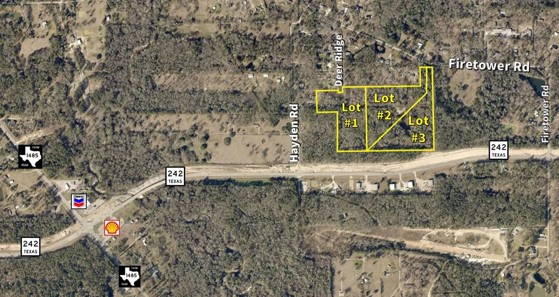 3 Wooded Tracts of land approximately 10+ Ac each near Grand Texas Theme Park. Hwy 242 approx 3 miles West of Hwy 59 off Firetower Road.