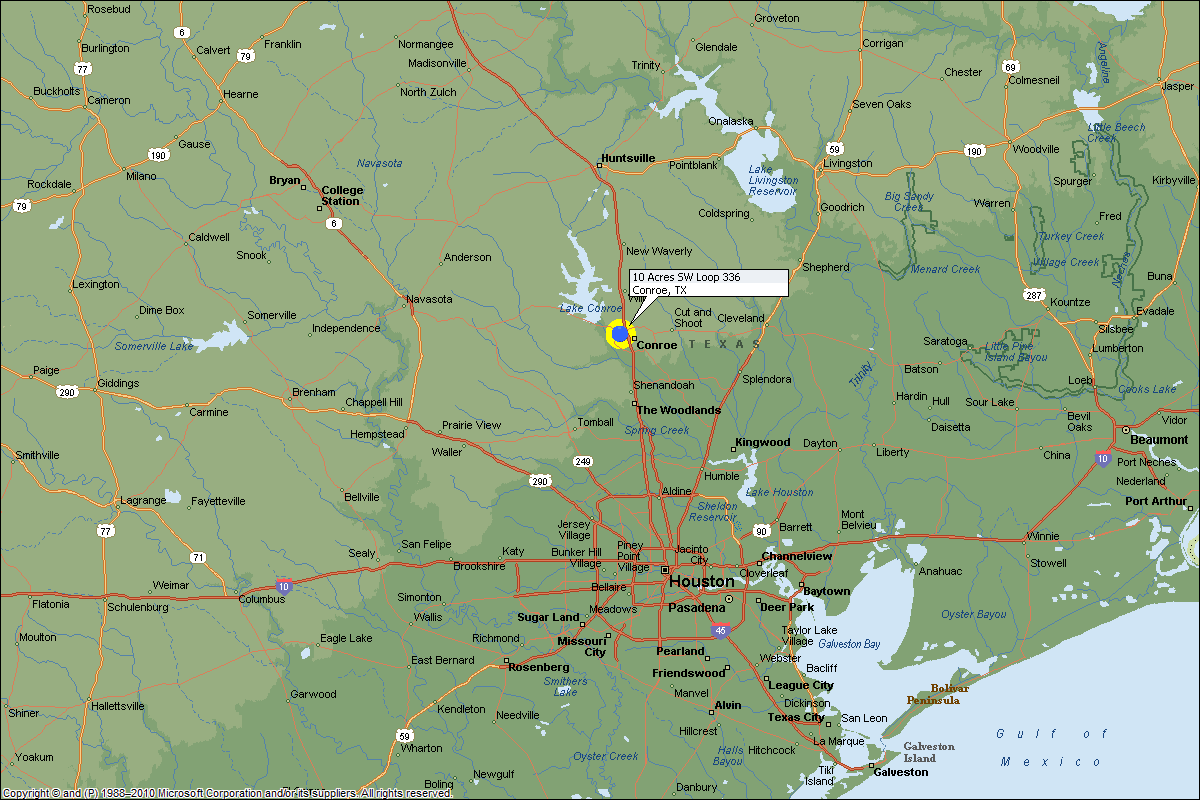 Lake Conroe is located only minutes from the property, "Grand Central Park," Conroe's newest master planned community, is a few miles southeast of the 10.10 acres.. The location of this tract is in the middle of the rapid expansion of Conroe, recently named the fastest growing City in the United States.
