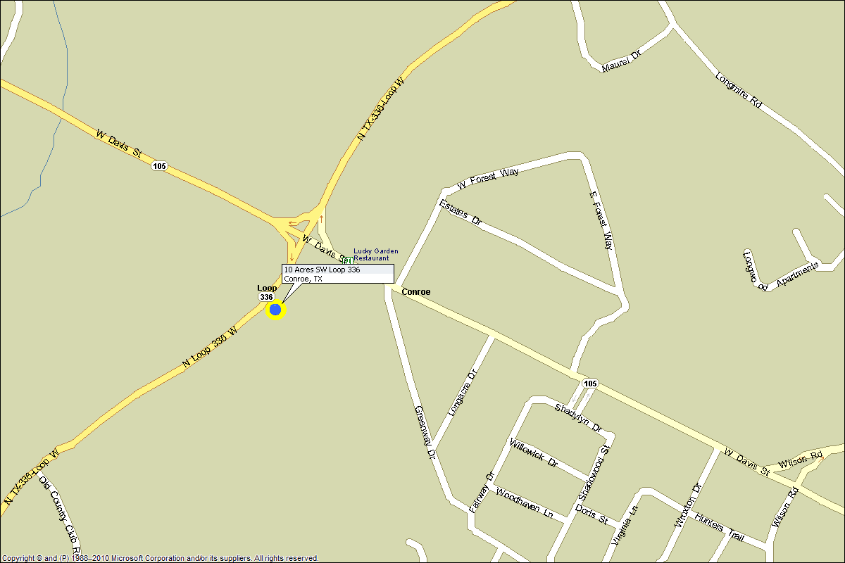 Research Parcel InformationAt the intersection of SH. 105 and Loop 336 go South 250' to property on left.