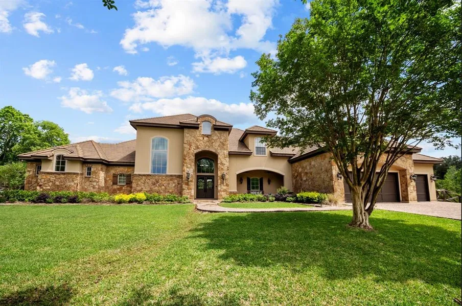 Stunning 16-acre gated luxury ranch w/custom built estate, barns, stalls, & a spring-fed pond. Luxury estate brimming with amenities & space nestled in Wildwood Estates! The grand foyer opens to family room & panoramic backyard views. Oversized family room open to kitchen/dining space. Entertainers' island kitchen w/SS appliances, gas cooktop, huge pantry, wine room, & breakfast bar. Stunning owners retreat w/oversized tub, shower & closet. 2nd bedroom suite down is great for guests; 2 bedrooms, game room & media room up; gym, steam room & office down. Game & media rooms include wet bar w/bev. frig, fireplace & covered patio balcony. Fenced backyard paradise with outdoor fireplace & kitchen, 4 covered patios, fish pond, & room to roam. Acreage includes 2 barns, stalls, & tack room. Generator included for just in case. Concrete tile roof. Horse-friendly w/commercial potential, this rural ...