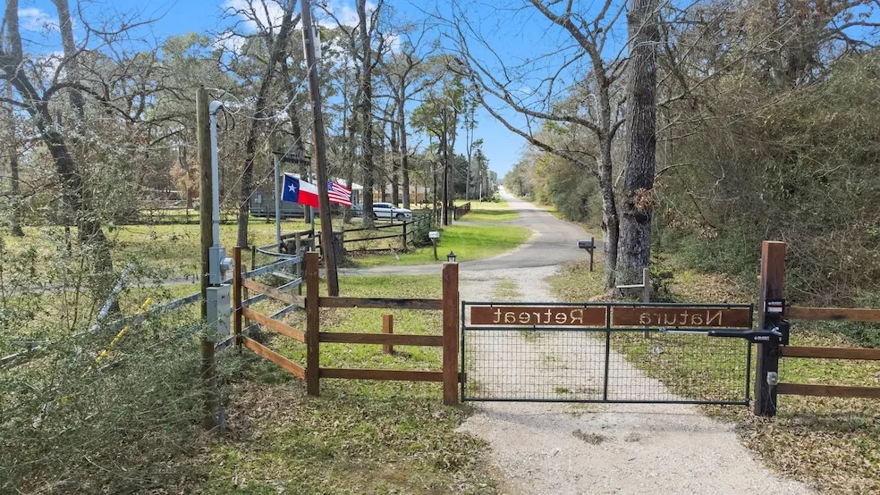 "11.5 +/- unrestricted acres of woodland oasis. Build your dream home near the 1/2 acre stocked pond surrounded by nature. Immersed in peace yet only 15 minutes from the Grand Parkway and 10 minutes from The Aggie Fwy. All utilities present (private water well, multiple 200 amp connections, AT&T internet). Property is unrestricted, not in any city limits and has a current wildlife evaluation for tax purposes, and has 2 bee hives which could be increased to 8 hives which would qualify to switch the evaluation to be based on bees. Property was formerly a glamping retreat. There are two glamping tents and a 300 sf fully equipped tiny house on the property that can be negotiated into the sale."