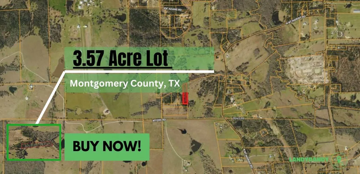 Research Parcel Informationvia Mt Mariah Rd; Head southeast toward TX-105 W (Restricted usage road); Turn right onto TX-105 W; Turn right onto Mt Mariah Rd; Turn left onto Myers Rd; Property is on the right side (Landlock Property)