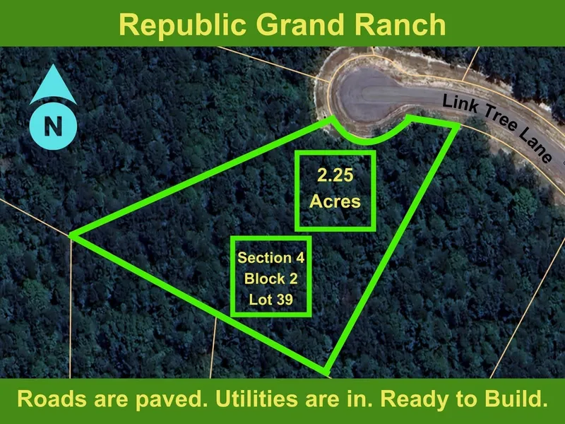 2.25 ACRES > DESIRABLE CUL-DE-SAC INTERIOR PARCEL > GREAT TOPOGRAPHY > NO PIPELINE EASEMENTS > MATURE TREES > Located on the outskirts of Willis with great schools and nearby shopping. Large lot wooded community with gentle rolling hills. Peaceful privacy. You will never be crowded by neighbors. Republic Grand Ranch is a large lot, wooded community in the rolling hills. Country lifestyle for your custom forever home. Trees, paved roads, water, HIGH SPEED fiber optic internet & underground power through out. Covered pavilions, parks, ponds, playgrounds, BBQ areas. Minutes from shopping, dining, schools, hospitals, and entertainment. Low taxes - No MUD tax. Average elevation is 400’ ASL. Plenty of greenspace and trails for hiking, biking and horseback riding.