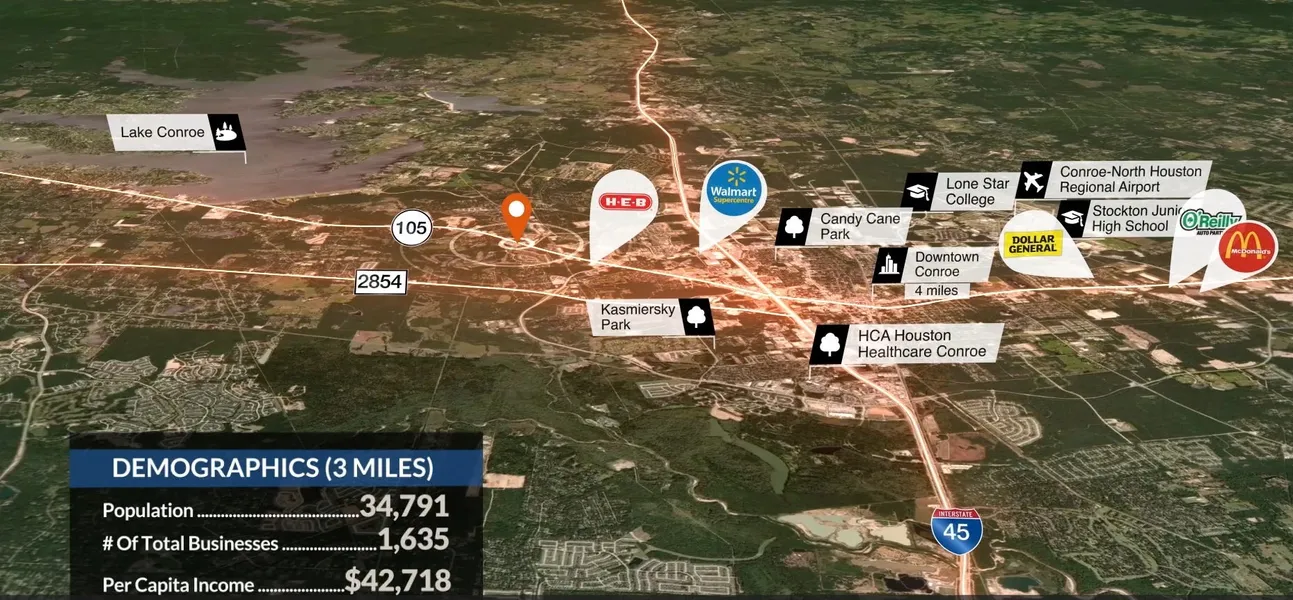 Major thoroughfare access, 1/4 mile from FM 3083, 1 1/4 miles from West Loop 336, approx. 3 miles from Hwy 45 and approx. 11.5 miles from Montgomery.