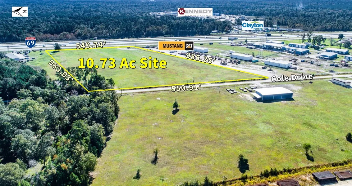 10.73-Ac unrestricted, cleared land w/ excellent frontage on Hwy 59. Property has access from Cole Dr and is adjacent to Mustang Cat Equipment Rental in SPeldnora. Water and Sewer provided by City of Splendora. Near Fostoria Rd, Hwy 99, and Hwy 242. Houston and Iah Bush Airport- 34 Min.