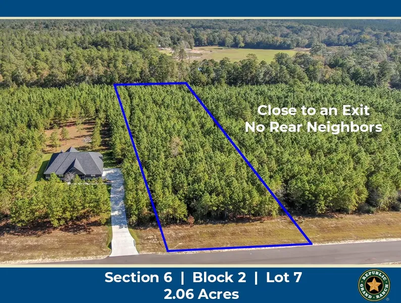 Exceptional 2.00-acre homesite ideally positioned near the front of Republic Grand Ranch, offering convenient access to I-45, The Woodlands, and Lake Conroe. This very flat, build-ready property is high and dry, located outside the floodplain, and free of pipelines, drainage, or utility easements, allowing maximum flexibility for home placement and design. With no rear neighbors, the setting provides enhanced privacy and a peaceful backdrop. Republic Grand Ranch is a premier wooded acreage community featuring paved roads, underground utilities, fiber-optic high-speed internet, and thoughtfully designed community parks. A curated list of approved custom home builders ensures architectural consistency and long-term value in this highly desirable custom home community.